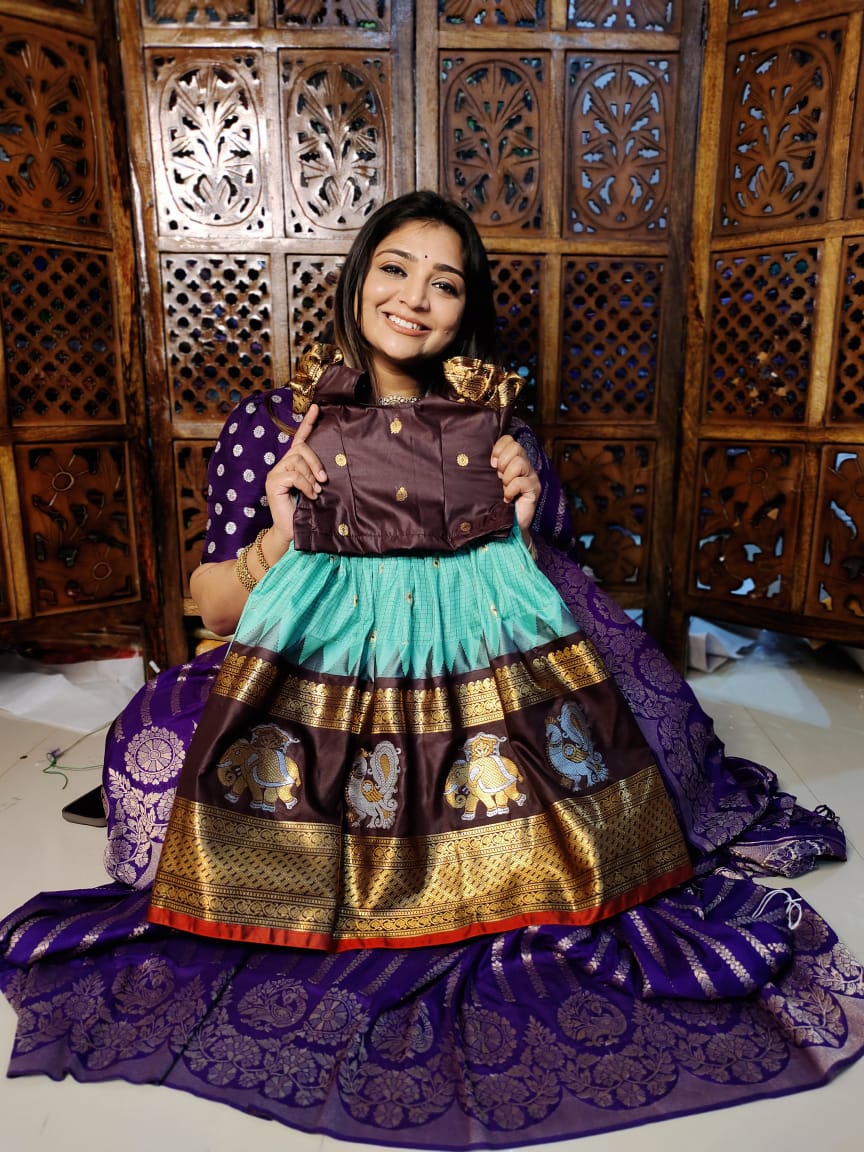 Premium semi gadwal silk lehanga with both side big border.